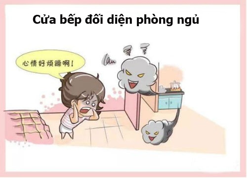 Khi cửa phòng ngủ đặt đối diện với cửa bếp sẽ tạo điều kiện cho khí nóng trong quá trình nấu nướng xộc thẳng vào phòng ngủ, hơi nóng này sẽ khiến người trong phòng cảm thấy khó chịu, mệt mỏi, ảnh hưởng đến sức khỏe. sức khỏe và các hoạt động hàng ngày.