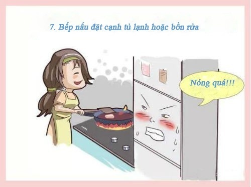 Nhiều gia đình thường đặt tủ lạnh cạnh bếp để tiện cho việc bảo quản và sử dụng thực phẩm. Tuy nhiên, theo phong thủy, nếu tủ lạnh đặt cạnh bếp nấu sẽ dập tắt lửa của bếp, khiến gia đình gặp khó khăn về tài chính.